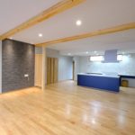 鮮やかなブルーのキッチンがLDKの印象を引き締めます。