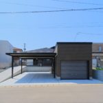 ビルトインガレージとカーポートを備えた、利便性とデザイン性を両立した平屋住宅。