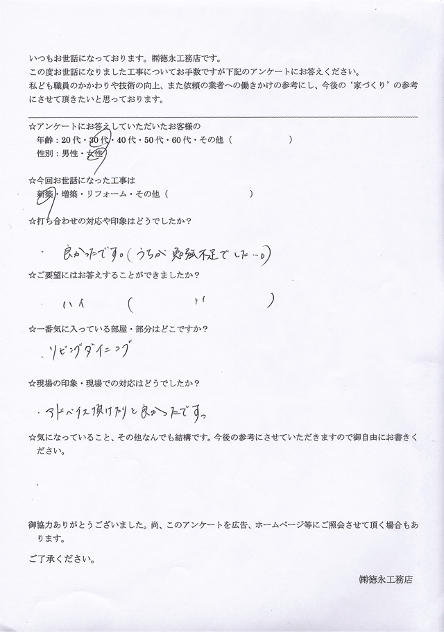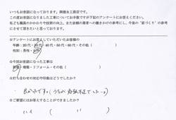 弊社では、お引き渡しして1年以上経過したお客様へアンケートを行っております。
